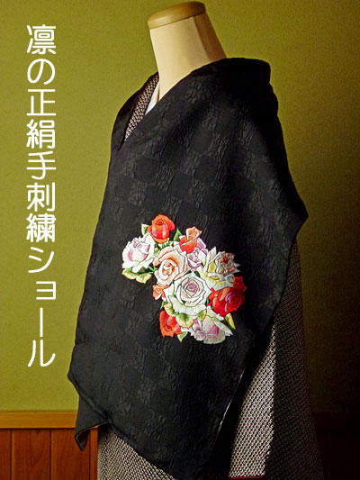 凛の正絹手刺繍ショール高ヒット